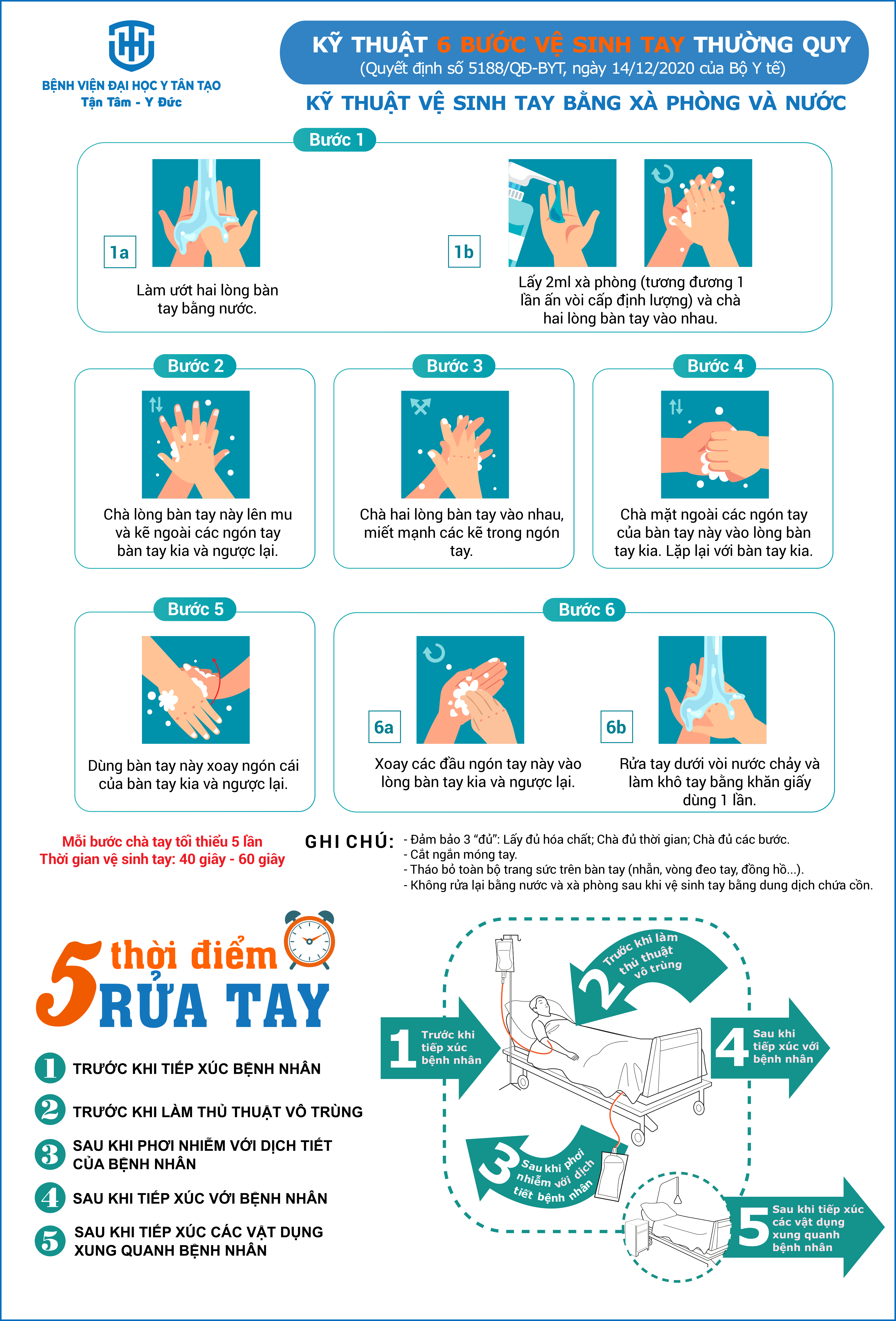 Kỹ thuật 6 bước vệ sinh tay thường quy trong cơ sở y tế
