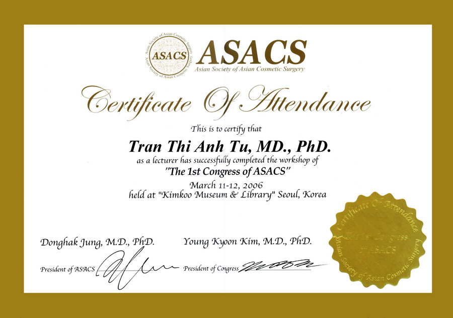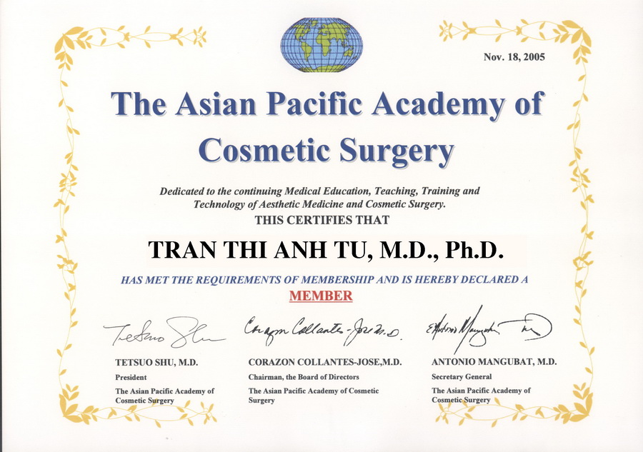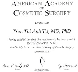 • Thành viên Hội Phẫu Thuật Thẩm Mỹ Hoa Kỳ (American Academy of Cosmetic Surgery - AACS)
