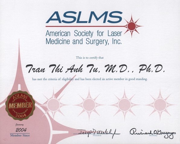 • Thành viên Hội Laser Nội Khoa và Laser Ngoại Khoa Hoa Kỳ (American Society for Laser Medicine and Surgery - ASLMS)