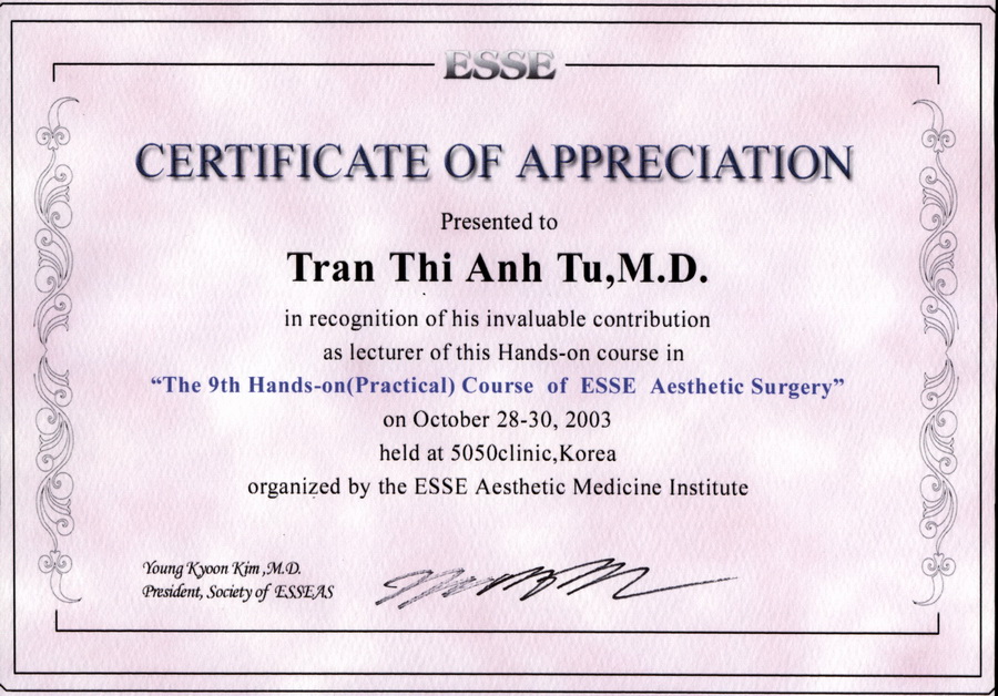 • Được Sở Y Tế TP HCM cấp giấy phép giải phẫu thẩm mỹ từ năm 1990.