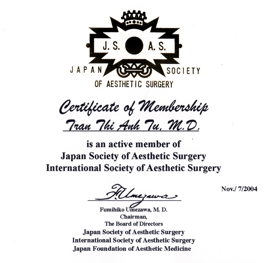 • Thành viên Hội Phẫu Thuật Thẩm Mỹ Nhật Bản (Japan Society of Aesthetic Surgery - JSAS).